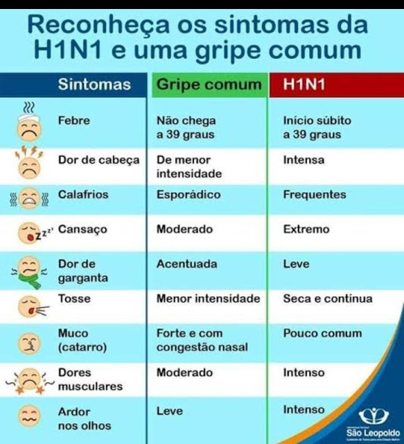 VEJA ABAIXO OS SINTOMAS SOBRE GRIPE COMUM E GRIPE H1N1.